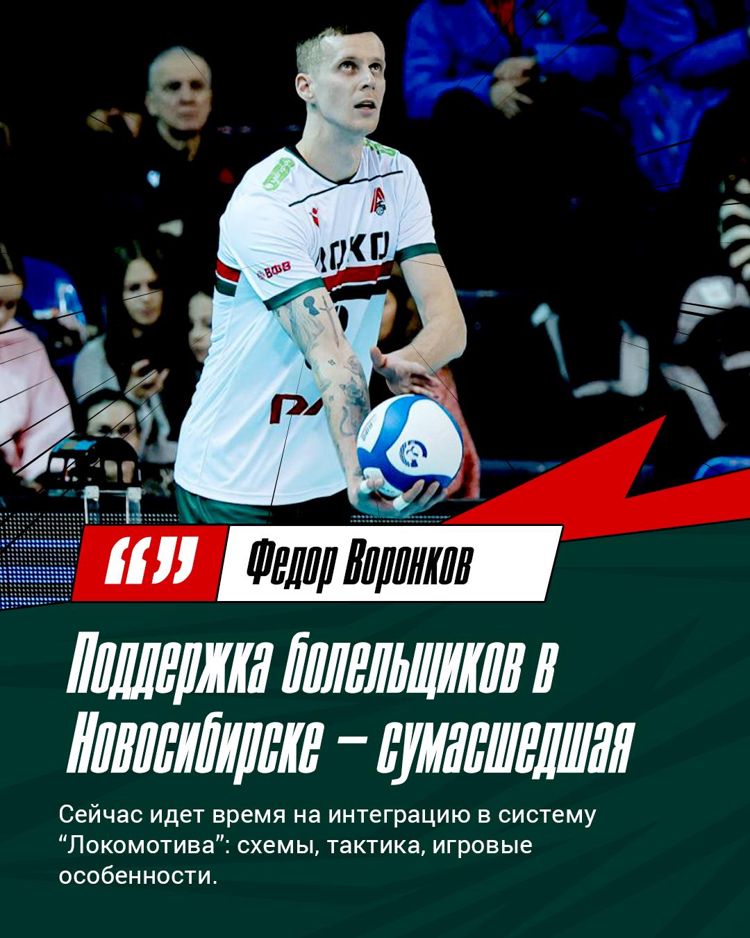 Новичок «Локомотива», доигровщик Фёдор Воронков рассказал о первых впечатлениях после перехода в Новосибирск и кто теперь за него будет болеть в Локосемье.
